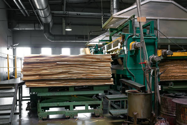 AssemblyThe dried veneers are arranged in a cross-grain orientation, with each layer perpendicular to the adjacent one, to maximize strength and stability.